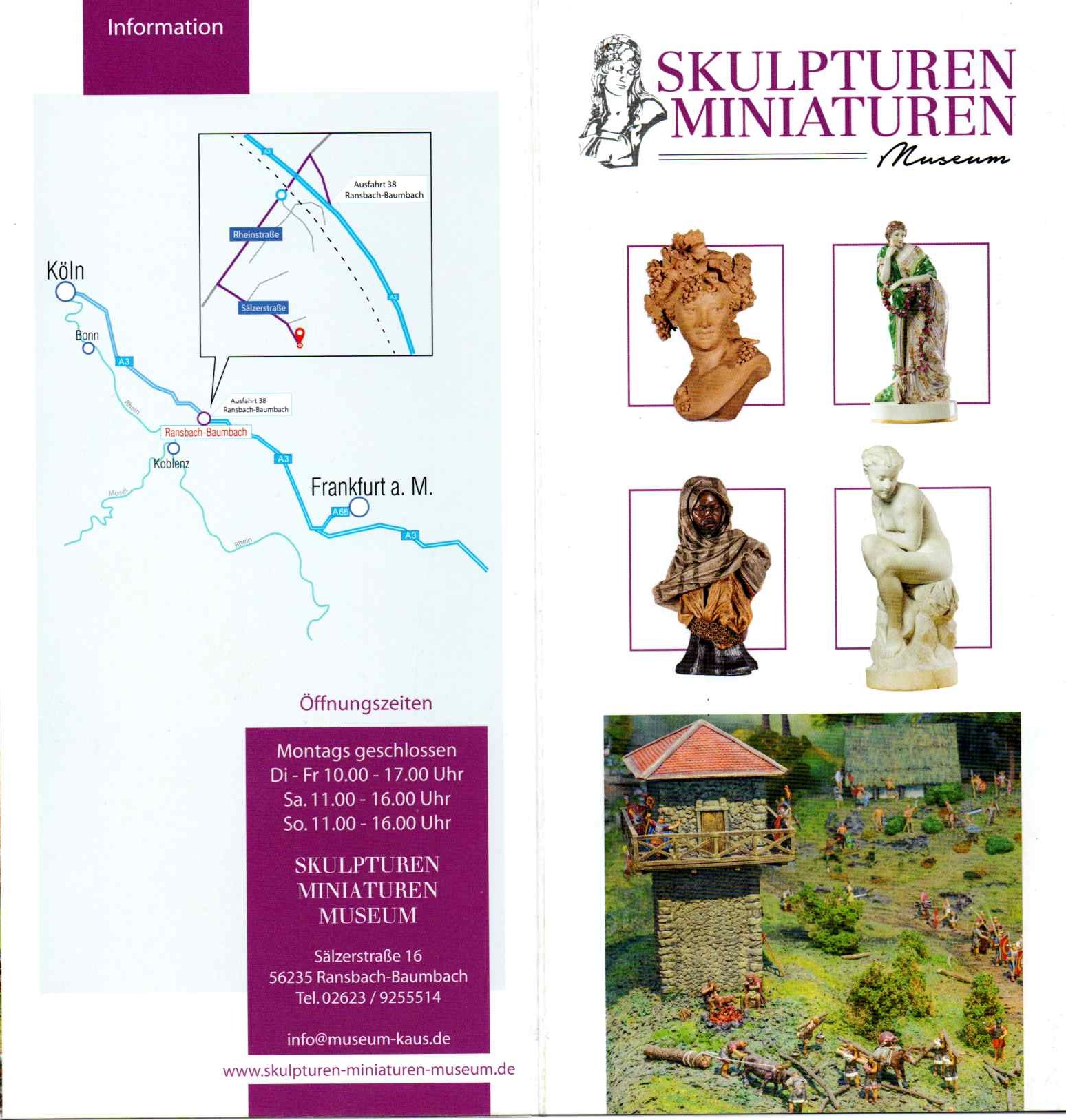 Visiting Germany we discovered this very interesting museum. Skulpturen und miniaturen Museum Ransbach-Baumbach. Full of artscraft, miniatures and History, Lovers of these matters will enjoy visiting it. An area is fully dedicated to miniatures representing the european ancient time, invasion of Great Britain from Vichings, rome and middle age. The rest is dedicated to sculptures mostly faces, in marbre, terra cotta and ceramics, we suggest you to take a half day free to visit the museum. People there have been very kind and friendly.